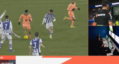 裁判回看VAR后认定奥尔莫确实对久保建英犯规在先,因此进球被判无效。