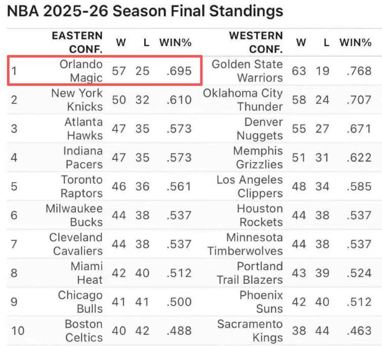 第五的老鹰是46胜35负,第六是45胜36负的猛龙,第七是魔术45胜36负,第八则是44胜37负的76人。